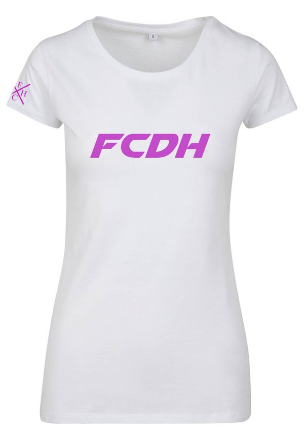 BY086 Dames T-shirt FCDH zwart/wit opdruk neon roze