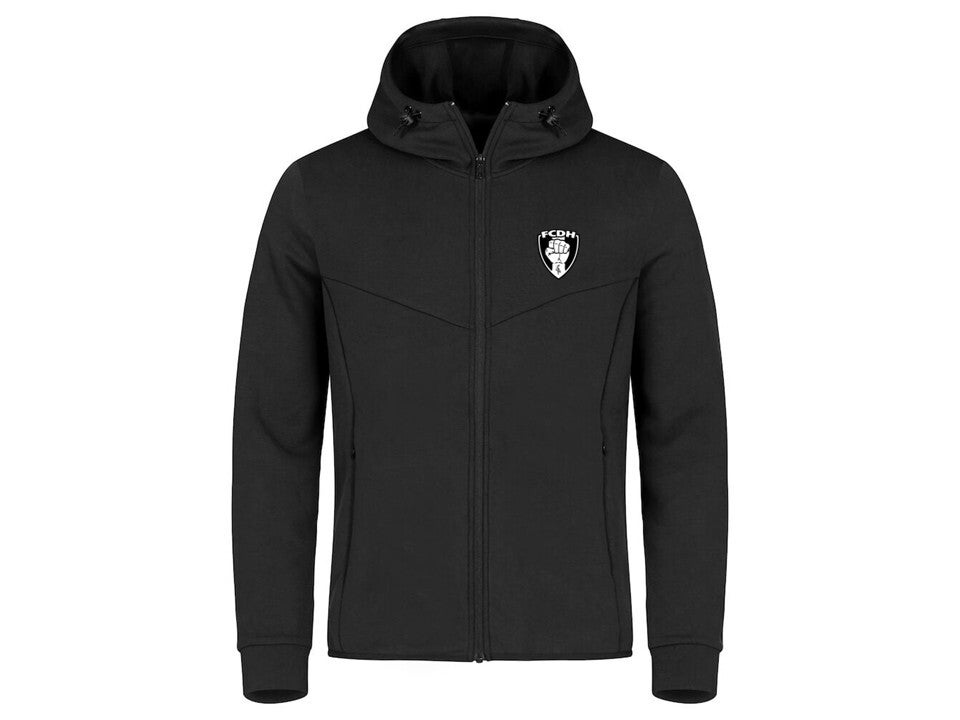 Het polyester in deze stof is van gerecycled materiaal.Een licht en comfortable vest dus met capuchon en diverse opbergmogelijkheden. Uiteraard is dit vest voorzien van ons FCDH vuistlogo.