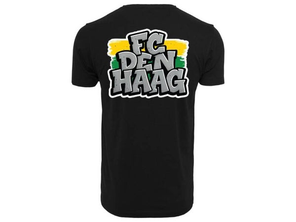 FCDH Midden Noord Graffiti. Nieuw design met geel groene accenten. Op de voorkant een witte Midden Noord visual. Op de achterkant een FC Den Haag Graffiti.