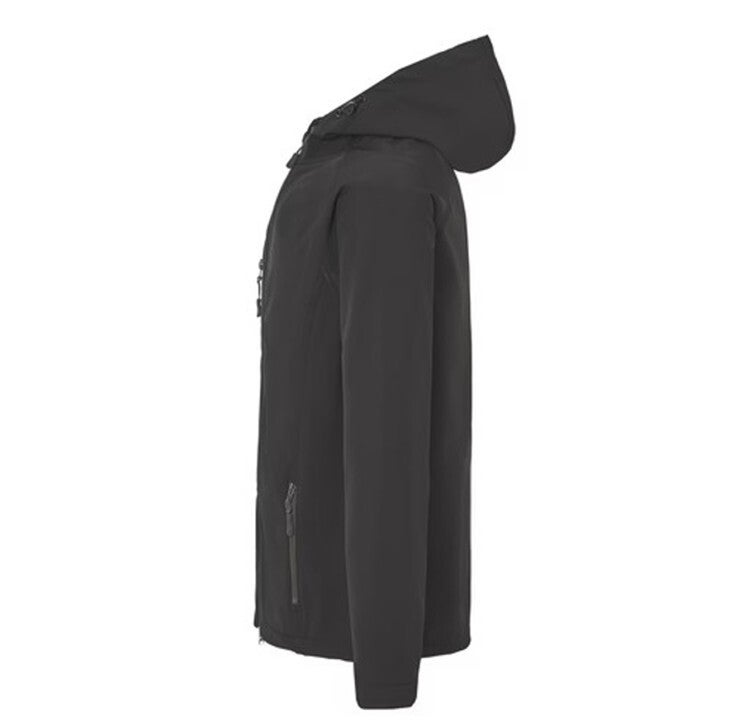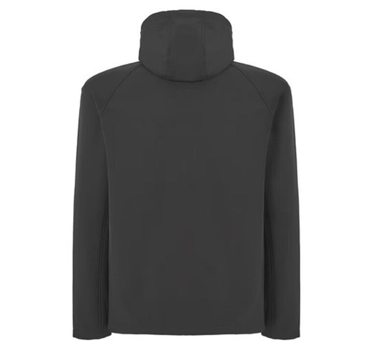 Softshelljack met gestikte vuist patch op de borst.